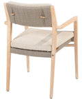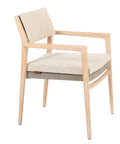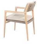 The Julia Stackable Dining Chair from 4 Seasons Outdoor combines style and practicality. Made with a sleek brushed teak frame and durable rope seating, it offers modern elegance and comfort. Two soft cushions ensure a relaxing experience, while the stackable design makes storage effortless. Perfect for outdoor dining, this chair blends convenience with contemporary flair.