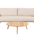One Zucca Coffee Table with a 90 cm round Natural Teak top and Teak legs (H: 30 cm)