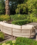 This stylish seating showcases a beautifully handwoven rope design, crafted with a high-quality, durable weave. The ropes are made from a polypropylene base, ensuring they remain taut and maintain their shape. Environmentally friendly, the rope contains no harmful materials and is fully recyclable at the end of its lifespan. For added comfort, the foam-filled seat and backrest cushions offer exceptional support, while the removable, machine-washable covers make cleaning a breeze. Perfect for both comfort and sustainability, this piece is designed to enhance any space.