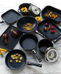 The 5mm thick base provides excellent energy efficiency and heat distribution, whilst the removable handles make the pans extremely versatile for use on the hob as well as in the oven.