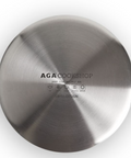 The ergonomic AGA laser etched handles remain cool on stove top.