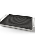 The griddle has an enamelled coating which conducts and holds heat well and is stick resistant