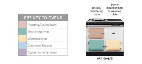 The AGA eR3 Series 100-3i is fully electric with ovens and hotplates that can be switched on and off as you need them, and with no need for servicing, a plinth or a flue, this range cooker is easy to install and run.