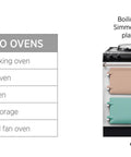 This model features two cast-iron ovens – one for baking and roasting, the other for simmering – as well as a useful warming oven. There’s also the choice of either, a state-of-the-art 2-zone induction hob with a bridging feature or, a warming plate.