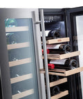 With the stylish good looks and exceptional performance you’d expect from AGA, the new 60cm dual-zone two-door undercounter wine cabinet is the perfect addition to any kitchen. Available in either black or stainless steel, the left and right operate as two separate storage areas running at different temperatures, ensuring just the right environment for your wine. The wine cabinet holds up to 40 bottles and has stylish glide-out wooden shelves, as well as triple-glazed UV-filtered glass doors and an anti-vibration system to ensure your wine is kept in optimum condition. The cabinet is illuminated when the door opens so you can easily pick just the right bottle and there’s a door open alarm too.