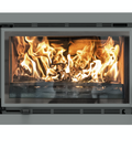 The Bay VL is a contemporary insert stove featuring a large landscape window framed with a clean, sharp edged surround.