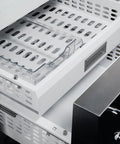 These built-in refrigerators are built to last forever, employing metal and glass inside and out for better temperature management. The lateral airflow system, with dual compressor and evaporator for refrigerator and freezer, reduces cold air loss when opening doors and allows for category-leading interior depth. The internal configuration is designed for maximum flexibility, with 0,28m3 of refrigerator volume and 0,08 m3 of FlexMode volume. The FlexMode Refrigerator-Freezer allows to switch the bottom compartment between freezer and refrigerator with one touch. Interior LED lighting on top and sides provide bright interior illumination on all levels with minimal energy consumption. Integrated water filter connected to water line ensures regular production of ice cubes of customizable size.