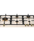 This Bertazzoni Heritage Series 90cm gas hob is made from enamelled steel. It is simple and precise to use, with five burners and accurate metal control knobs. A central 5kW wok ring adds another layer of versatility. The cast iron pan support is solid and secure for safe use. It is available in Matt Black, Ivory with copper details or Ivory with chromed details.