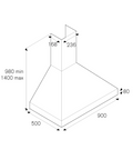 Matching the design of the 90 ranges, the hood ventilation system has three settings for different extraction levels. Two LED lights give bright worktop illumination. Removable filter elements are dishwasher safe. The hood chimney is height adjustable.