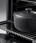 The triple-oven range cooker is the pinnacle of versatility. The main 11-function electric oven features a digital programmer that allows a perfect control of cooking: it displays the oven functions selected, manages time during cooking and gives feedback on real-time temperature. The useful auxiliary oven, without fan, has four modes. A powerful adjustable grill is provided in the third oven.