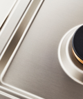The hob has a stainless steel electric teppan-yaki griddle and six versatile gas burners in brass including a dual-ring power burner.