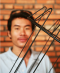 The frames are made in Phnom Penh by a small ironworking initiative and the rattan is hand woven in the town of Kampong Thom. In the forests where rattan grows, its economic value is helping protect forest land, by providing an alternative to loggers who forgo timber logging and harvest rattan canes instead. The Fat Lip was designed by Chris Jackson.