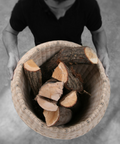 A seamless basket woven from soft, steamed water hyacinth. Unstructured, very strong with a leathery texture. Ideal for logs kindling or wood pellets. Can be stored flat when not in use. The floppy basket is also available in a larger size.
