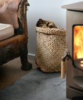 A seamless basket woven from soft, steamed water hyacinth. Unstructured, very strong with a leathery texture. Ideal for logs kindling or wood pellets. Can be stored flat when not in use. The floppy basket is also available in a larger size.