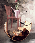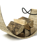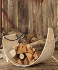 Based on the petals of a Lotus flower this sculptural log holder is both stylish and ergonomic. The ironwork frame is tightly woven with rattan. Ideal for logs and kindling.