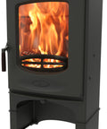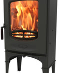 With an 8kW output the stove features an impressive portrait picture window and takes a 366mm (14”) log. With majestic proportions the C-Eight is suited to larger fireplaces and living spaces. This stove meets Clean Air Act requirements for smoke control exemption; allowing wood to be burnt in smoke control areas.