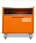 The Cheeky Charlie Oven Base Cabinet was designed to accompany the Cheeky Charlie Tabletop Oven, and let the oven sit at the perfect height for effortless cooking as well as provide useful storage.