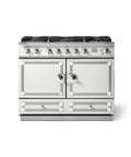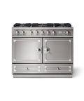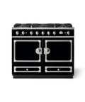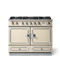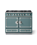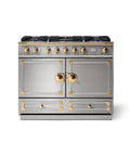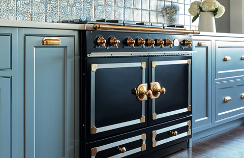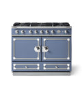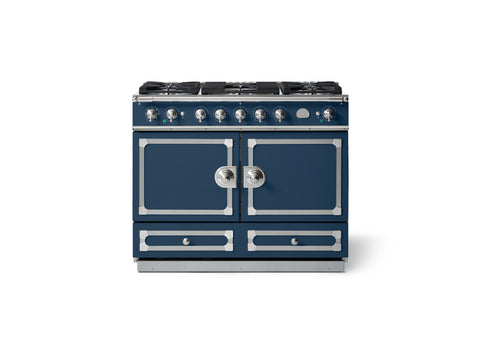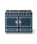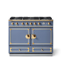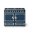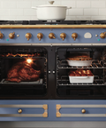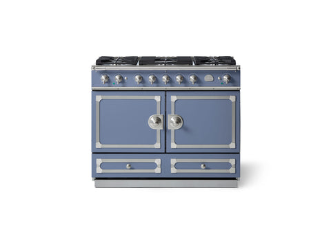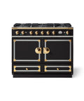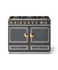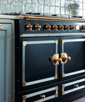 The original CornuFé range, this 43″ range is your first La Cornue love. It’s available in gorgeous colours and 3 trim accent choices of Polished Brass, Satin Chrome and Polished Chrome. The CornuFé 110 features two electric convection ovens, one of which is a seven mode multifunction oven, the other an electric convection oven, five powerful gas burners and one large storage drawer.