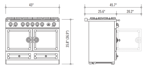 NOTE: Side panels are stainless steel for all colors except Gloss Black and Matte Black ranges have flat black side panels. The Polished Brass Trim is natural, non coated metal and will patina over time.