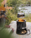 With smart storage space, you can stock up on firewood and enjoy the evening. Pilar Premium 50 comes in the combination of black enamel and stainless steel, of the best Espegard quality. Bonfire, simply. Maximum air supply and double combustion make burning a fire easy, while the fire becomes extra warm and almost smoke-free. Double walls give lower surface heat and a safer fireplace.