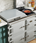 There’s much to love about the beautifully engineered and elegant Everhot 100 Series, and you have two options to choose from: the Everhot 100+ or Everhot 100i. The attractive and balanced four cast iron door configuration conceals one oven for roasting, another for baking/casseroles and the third is a useful plate warming oven. The fourth door reveals the controls. Under the easy-lift lids are cast iron hot and simmer plates which provide ample cooking surfaces. Within the top oven there is an integral grill which is incredibly useful in the busy kitchen.