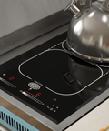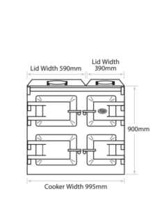The Everhot 100i is equipped with a two zone induction hob, fitted neatly under the second lid. With fingertip controls and incredible speed and control, it is an essential modern addition to your classic range cooker. The warming oven on this model is behind the bottom right door.
