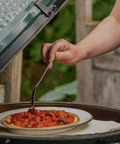 Made from porcelain fused onto heavyweight steel, the plate is durable, weatherproof, chemical resistant and capable of handling temperatures up to 270°C. This makes it ideal for cooking or warming food as well as serving centrepieces, sides or salads to the middle of the table. The familiar ice-white enamel surface is complemented by Big Green Egg’s famous racing green on the base and hand-painted rim.