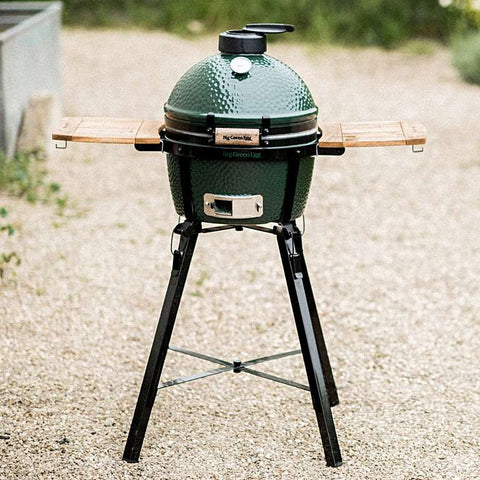 This product includes two Acacia Shelves, each with four hooks. The inner hooks connect to your EGG, and the outer hooks are great for hanging utensils on. We're working on getting some precise dimensions up for you very soon! Finally the MiniMax can stand alongside its siblings! This nifty design allows you to simply and safely raise your MiniMax off the ground by 60cm, with an open leg span of 55cm. Light enough to carry around on a camping trip, but durable enough to cope with the British weather as it's made from powder coated steel. An essential for all the MiniMax lovers out there!