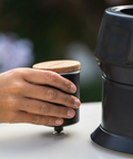 A black anodised aluminium funnel with a cork top, engineered with precision to inject just the right amount of water into the oven and create steam on entry.
