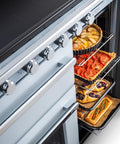 The Estel Deluxe range cooker embodies a classic and timeless aesthetic, blending retro and traditional elements with clean geometric lines and signature chamfered edges. Its design is inspired by utility and durability, offering a practical yet stylish option for those who value timeless functionality. The unique control dials and handles feature a chunky yet ergonomic design that enhances the nostalgic look, perfectly suited to traditional and modern kitchen design in a choice of eight colours, from pastel hues to classic neutral shades.
