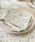 These adorable, fun Spring Chicken Napkins, featuring Sophie’s playful farmyard motif on a crisp white background. Whether indoors or out, these napkins are a lovely way to start your table setting, perfect for any occasion.