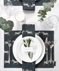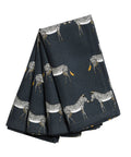 Add a touch of style to any table with these beautiful napkins. Celebrating the Grévy’s Zebra with mustard yellow tails on a navy charcoal background and showcasing their distinctive black and white stripes, playful tails and upright manes, these lovely napkins pair perfectly with the table runner and placemats.