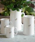 A racing hare features on the front and back of this fine bone china jug with some small green seedlings around the rim. A small seedling is featured on the inside rim at the handle.