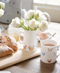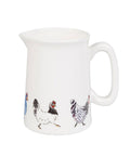 Treat yourself to this beautiful fine bone china jugs featuring four delightful clucking hens around the base. The perfect size for milk and cream. They also make a pretty flower vase for a kitchen, bedroom or table setting.
