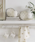 This lovely side plate is made from stoneware and decorated with Sophie’s gorgeous country chickens with a contrasting ochre coloured rim. Measuring 15cm diameter, this lovely plate makes a wonderful small canape plate or side plate for any stylish table setting.