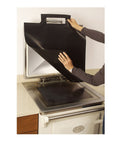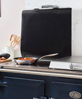 The Everhot silicone Splashback is placed over the lid handle and hangs in front of the lid when it is raised, helping to prevent cooking splashes from spoiling the lovely mirror finish of a new lid.The splashback may be used over and over again and is very easy to clean using warm, soapy water. This size is for the main lid on all models. It has rounded corners to finish it off. Please note, the splashback must be removed before closing the lid.