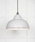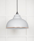Our Accent pendants are spun from solid copper. When lit, the white gloss interior bounces light and creates a radiant glow, the brightest of our finishes. These pendants work well with a warmer bulb.